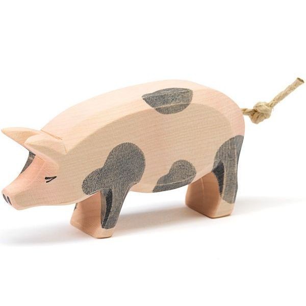 Porco malhado em madeira com 6cm de altura, recomendado a partir dos 3 Anos.