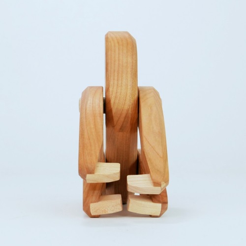 Este brinquedo de madeira foi feito para conscientizar as crianças sobre a importância de proteger o meio ambiente e os animais.