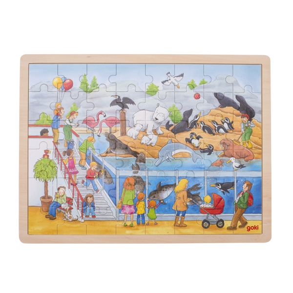 Puzzle em madeira com 48 peças e moldura em madeira.