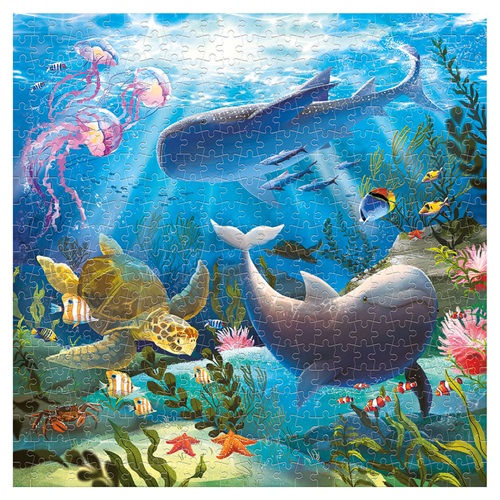 Nas misteriosas profundezas do oceano, animais majestosos deslizam pela água... Quando todas as 500 peças do puzzle são montadas, um mundo subaquático mágico abre-se para o espectador, no qual há muitas criaturas marinhas para descobrir. O puzzle treina a concentração e as habilidades motoras finas e oferece diversão encantadora para crianças a partir de 8 anos e toda a família.