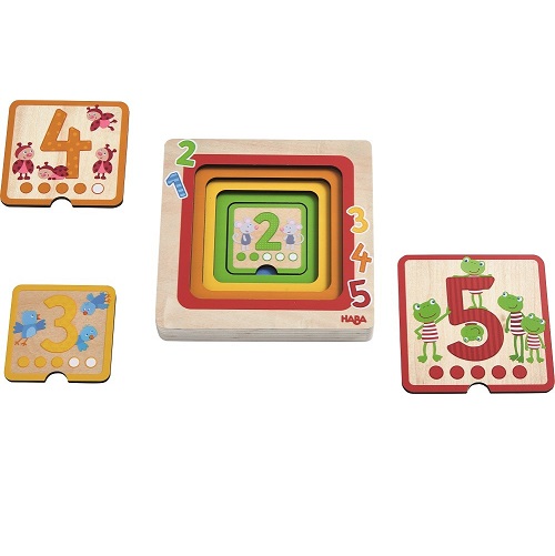 Um puzzle 3D que ajuda a desenvolver a motricidade e o reconhecimento das dimensões, de uma maneira divertida. Do mais pequeno para o maior, vão descobrir os números de 1 a 5 e as quantidades correspondentes! Puzzle de madeira com 5 níveis