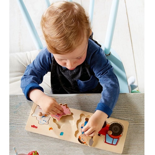 Um tractor, um agricultor, um porquinho e uma cabrinha! Um puzzle em madeira com 4 peças com pegas para os verdadeiros conhecedores do dia a dia de uma quinta!