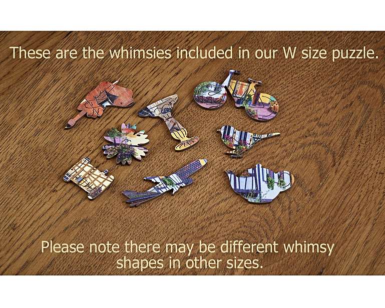 Estes puzzles têm a particularidade de não ter os tradicionais cantos e terem peças com formatos especiais relacinados com o tema do puzzle, animais, objetos, plantas, árvores, etc.. Contém um saco em algodão para guardar as peças