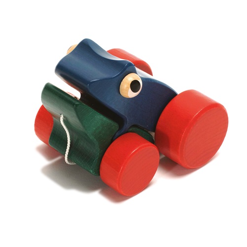 Rã em madeira para puxar, feito e pintado à mão. Ao puxar abre e fecha a boca.