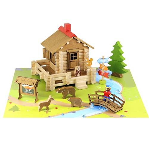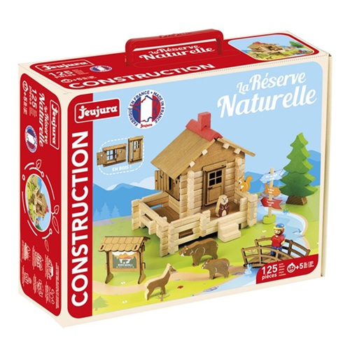 Reserva Natural com 125 peças: conjunto de construção em madeira natural e tingida com instruções de montagem, um tapete de brincar e vários acessórios e animais para passeios maravilhosos ao ar livre.
