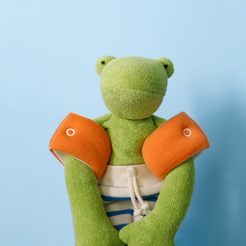 Onde encontras algo assim? Os nossos dois sapos nadadores podem ser um pouco tímidos quando se trata do lago local, mas, na imaginação deles, eles mergulharão contigo pelos sete mares.