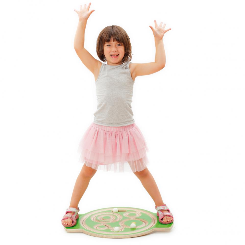 A tábuas de balanço Erzi combinam jogo, diversão e movimento. Equipados com bandas antiderrapantes, crianças e adultos podem usar esta tábua de balanço e conduzir as bolas ao ao longo da pista. A meia bola flexível e antiderrapante na parte inferior da tábua de balanço oferece a segurança necessária em jogos de equilíbrio. A pega de transporte integrada também serve como suporte da bola.