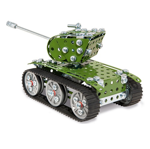 Modelo de brinquedo detalhado de um tanque em verde para brincar e colecionar. Com isso, pequenos e grandes designers podem descobrir o mundo da tecnologia de forma lúdica e treinar as suas habilidades motoras e criativas ao mesmo tempo. O desenvolvimento de estruturas de pensamento tridimensionais também é promovido. Design robusto e estável graças às peças metálicas, muito boas propriedades de rolamento graças aos trilhos de plástico e à torre giratória. Diversão duradoura graças a inúmeras combinações possíveis no mundo do jogo eitech, pois todos os componentes podem ser combinados entre si. Contém 280 peças.