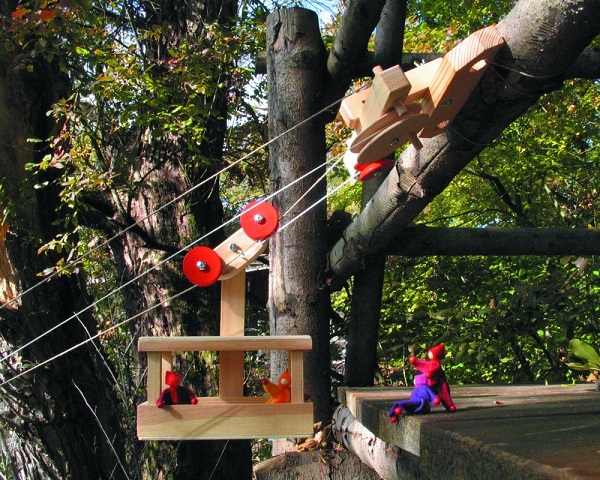 Teleférico em madeira para construir, com cabo até 2metros. Não contém mecanismo de roldana (terá de se comprado à parte, ref. 112). Funciona sem mecanismo mas terá de ser puxada ou largada uma corda manualmente.