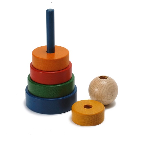 Torre de encaixe em madeira. Com 5 peças para encaixar.