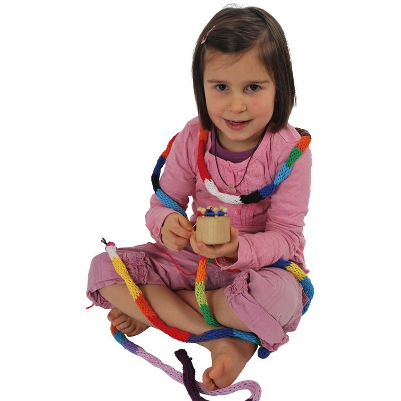 Tricotin de madeira para fazer rabos de gato, capas de caneta, de maçaneta, de cabos ou até enrolar à volta da árvore! Para crianças cheias de imaginação, ideal para desenvolver a motricidade e a concentração.