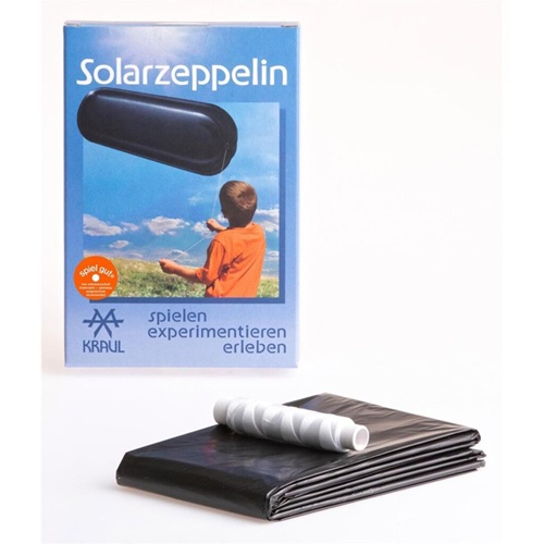Devido ao seu corpo escuro, o zepelim solar (3 x 1 metros) absorve a maior parte dos raios solares que incidem sobre ele. O ar no balão torna-se mais leve (menos denso) à medida que aquece. O ar mais quente, agora mais leve que o ar ao redor, começa a subir junto com o tubo de plástico extremamente leve.